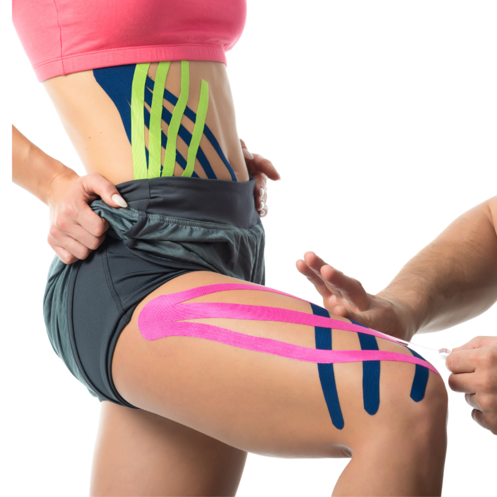 A aplicação pode ser usada em diversas partes do corpo para o tratamento de lesões. A tensão aplicada pela fita, aumenta a circulação sanguínea no local, o que reforça o tratamento natural de cura.